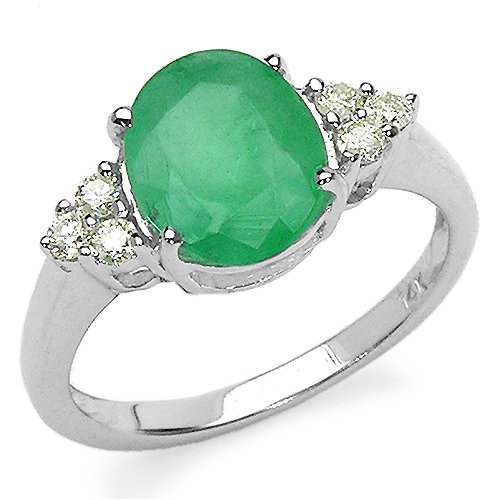 14 Karat White Gold 3.20 Carat Genuine Emerald Oval & Diamond Accent Ring Review
